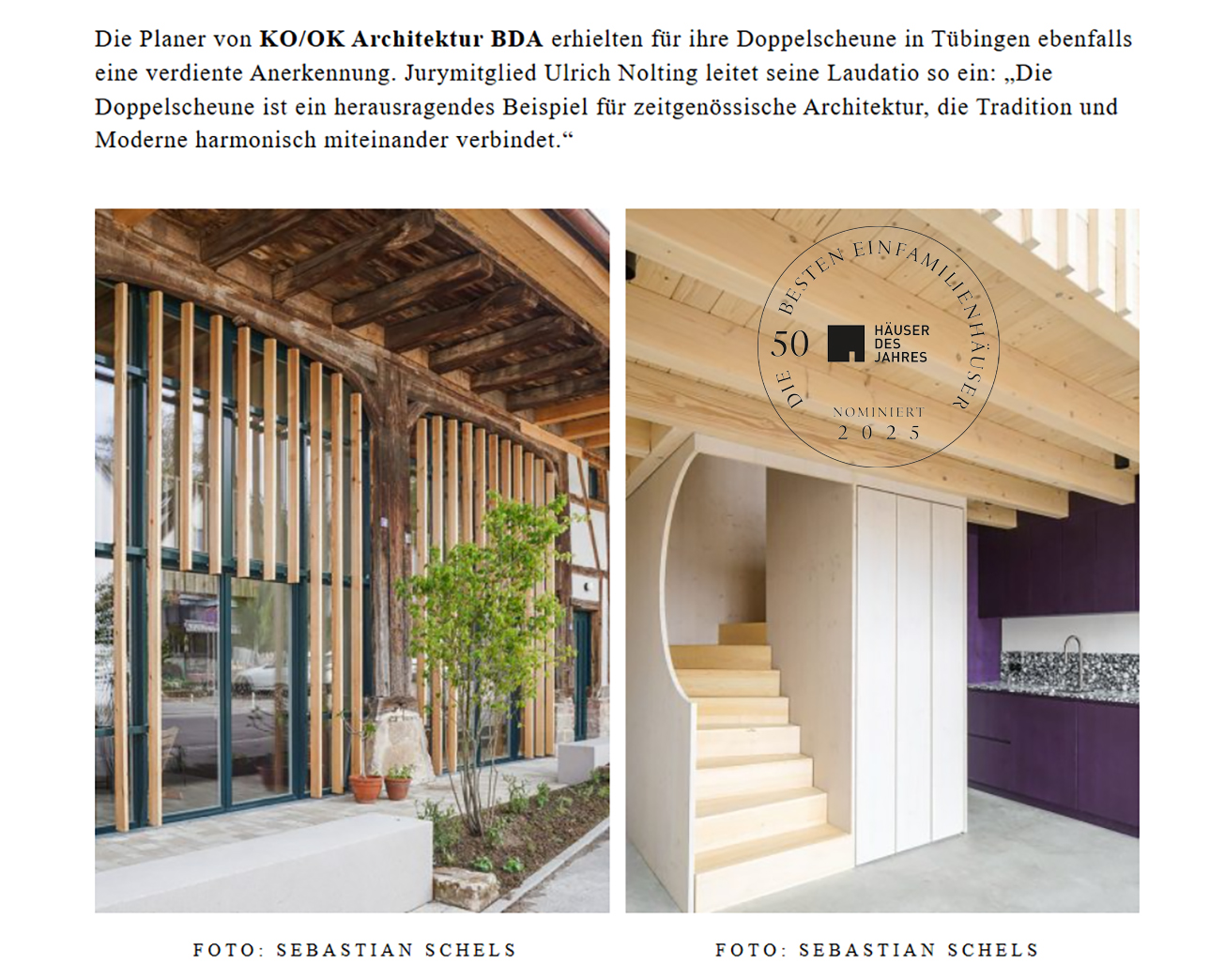 Unser Projekt Doppelscheune wurde für die Häuser des Jahres 2025 mit einer Anerkennung ausgezeichnet.